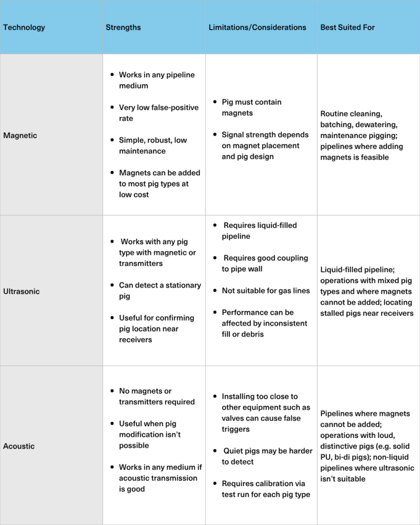 Choosing the right pig signaller depends on the pig type, the pipeline medium and the operational environment. Each technology has its strengths, but real-world conditions often determine which option will provide the most reliable performance. Reviewing these factors early in the planning stage helps ensure the signaller selected is truly suited to the line.